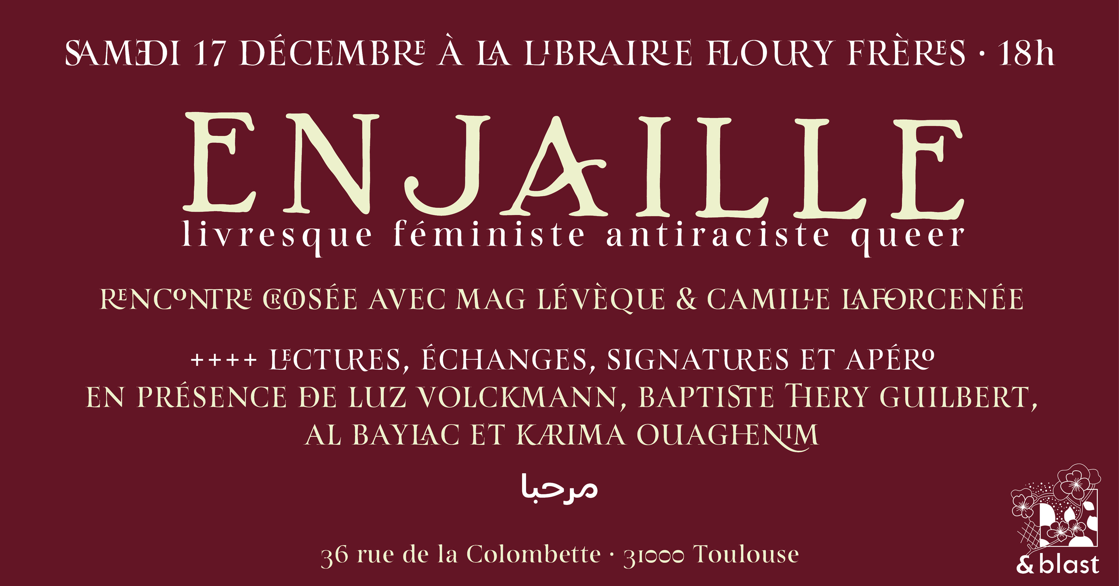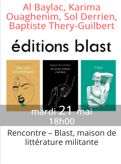 Rencontre-lecture croisée avec Alice Baylac et les éditions Blast, animée par Claude Faber