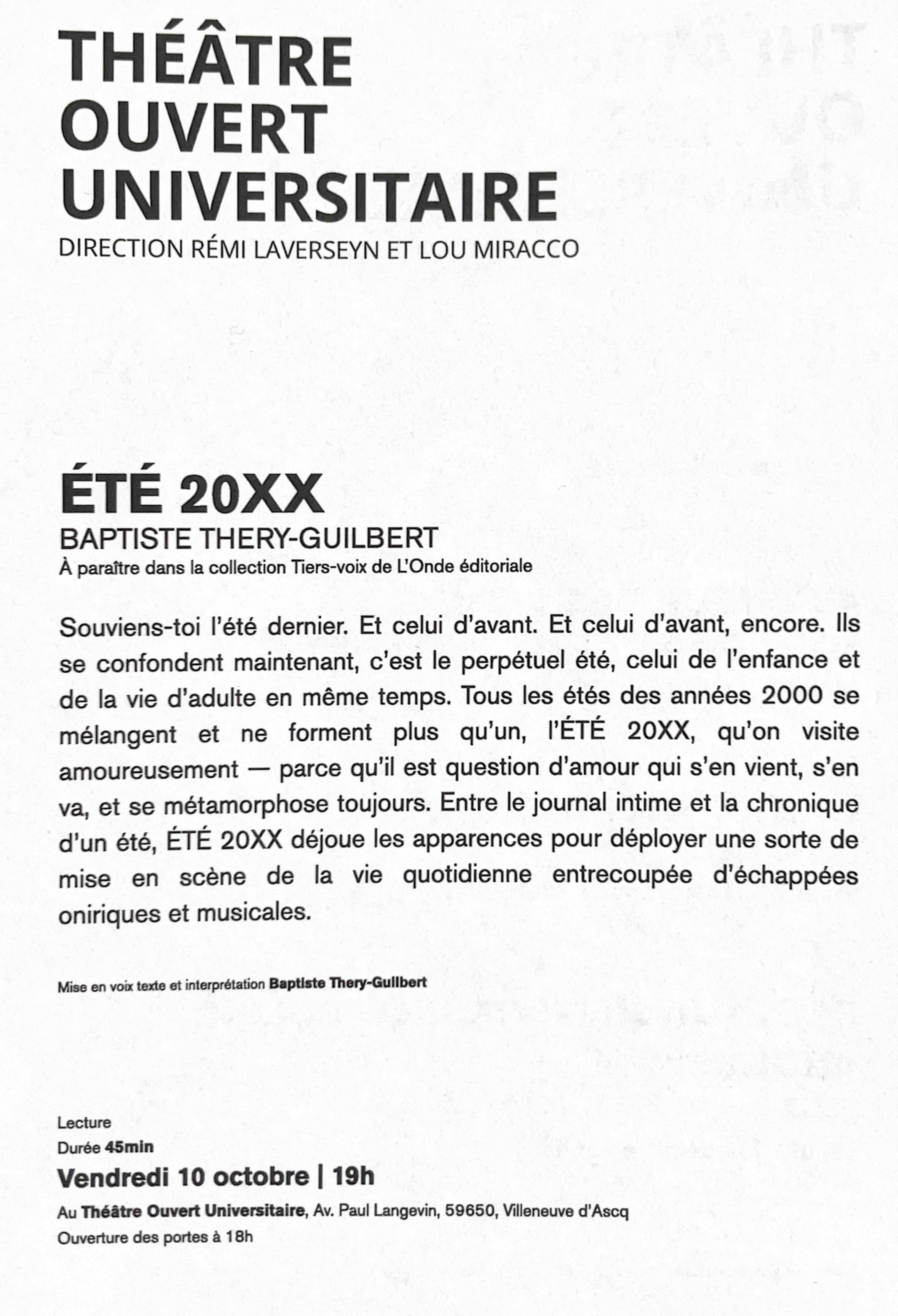 au Théâtre Ouvert Universitaire (Lille)
